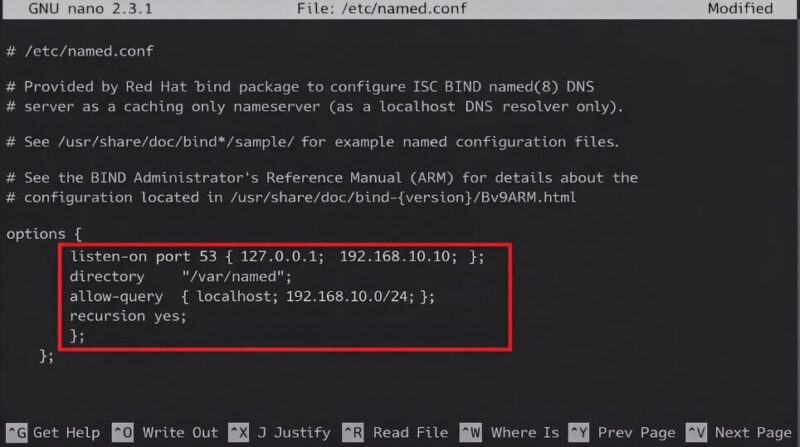 cp /etc/named.conf /etc/named.conf.backupEdit File named.conf