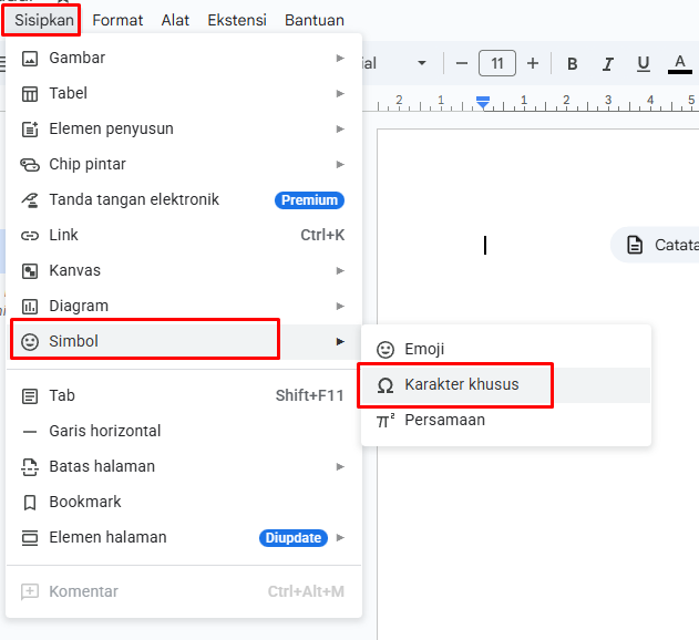 Selain menu dan shortcut, Google Docs juga menyediakan beberapa cara alternatif untuk membuat superscript, terutama untuk kebutuhan simbol atau rumus tertentu.