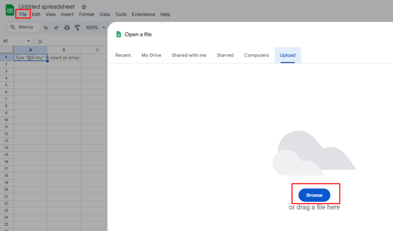 - Unggah file Excel dari komputer atau gunakan metode drag & drop